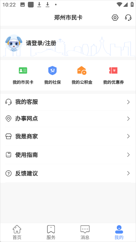 1、打开郑州市民卡服务平台-我的-登录。