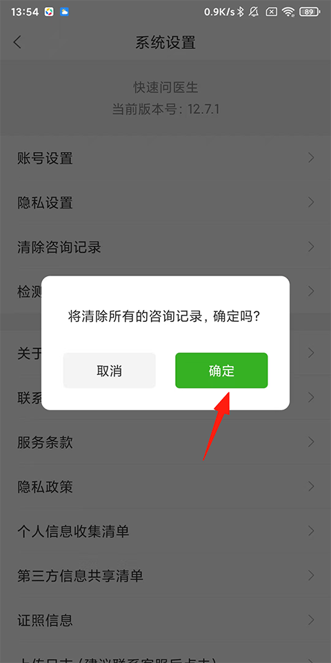 2、找到并点击清除咨询记录;