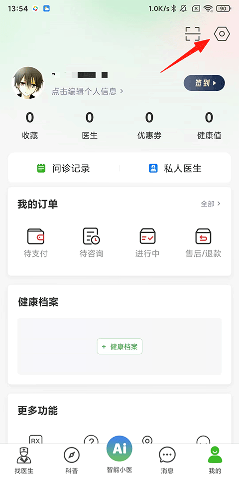 1、打开快速问医生APP,点击我的-右上角设置按钮;
