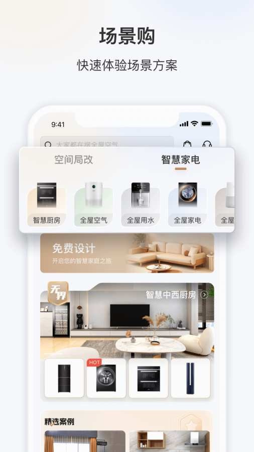 【智慧场景】为用户创造因需而变的N种场景方案,从阳台到厨房、客厅、浴室、卧室、衣帽间、全屋空气、全屋用水等多场景生态场景解决方案,重新定义智慧生活方式,遇见家的更多美好;