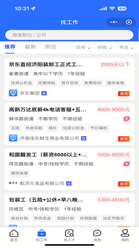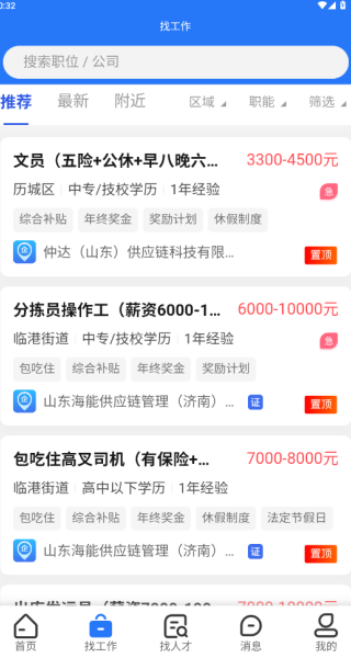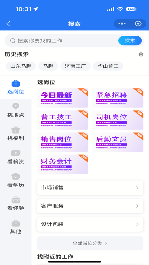 2、在找工作板块中,拥有各种类型的岗位,大家可以根据需求自由选择;