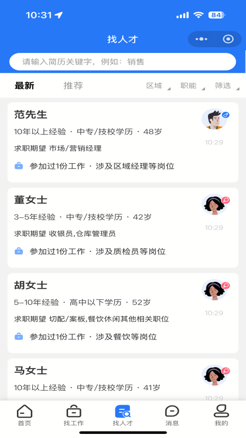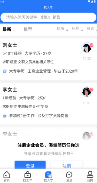3、在找人才板块,企业和用人单位,能够查阅各种简历,找到符合的人才;