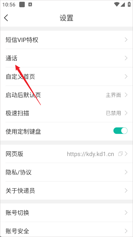 3、进入设置后选择通话