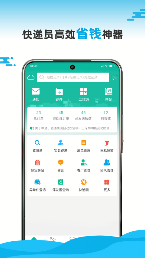 快宝快递员app最新版是专门为快递小哥和配送员们准备的工作辅助平台,它能够有效的帮助用户提高工作效率,系统提供了便捷的配送功能,可以直接对需要送出的包裹进行派发和管理,每个物件都扫描保存到系统当中,派送成功后自动发送取件信息给客户,非常的方便。