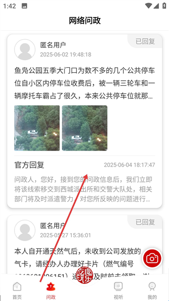 2、网络问政板块中用户可以通过匿名的方式反应一些社会性的问题,而官方也会及时回复并将线索移交相关部门处理。