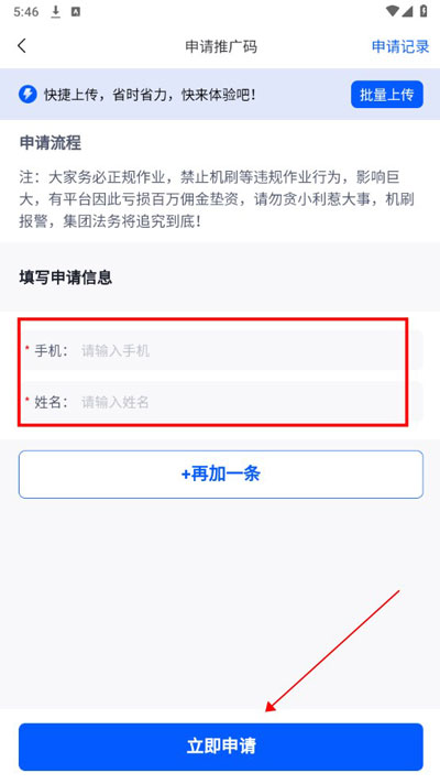 3、填写申请信息,点击立即申请,等待审核通过