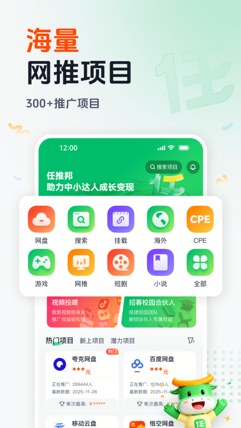 作为多个知名项目的合作伙伴,任推邦拥有庞大的推广渠道网络,带来更多的商业机会。