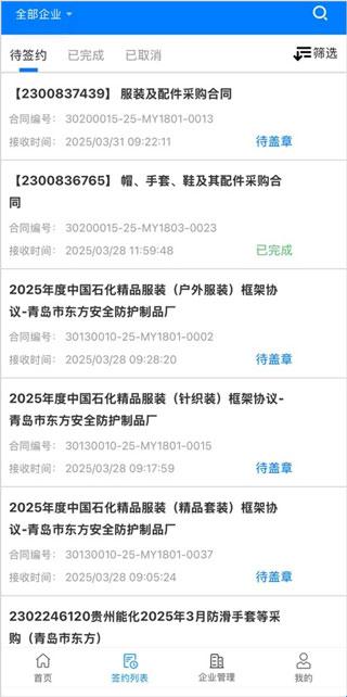2、签约列表清晰呈现待签约、已完成及已取消的合同,便于用户随时掌握合同进展与状态。