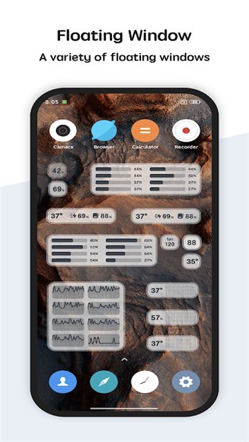 桌面悬浮窗和状态栏悬浮窗实时展示 CPU温度、电池温度、内存使用率,强大又方便,实时信息想看就看。