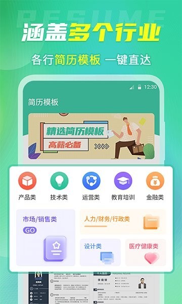还在因为不知道简历怎么写而烦恼吗?那就来简历模板大全app吧!简历模板大全是一款功能特别强大的应用软件,软件中不仅有涵盖金融、教育培训、产品类、技术类等多种行业的简历模版,还有各种各样的求职技巧、面试秘籍、求职新闻和就业指导等,全面化的学习内容基本可以满足不同用户的求职需要,为用户找到好工作保驾护航。