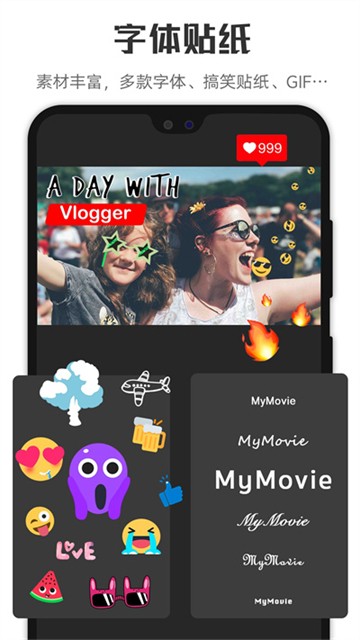 海量动态贴纸和表情,放大缩小,变换位置。
