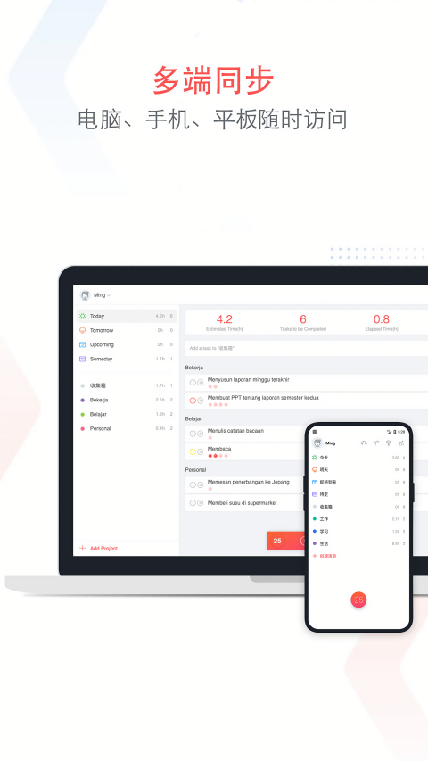 无论你是在手机,电脑还是平板上,都能随时随地的记录任务或者开启一个番茄。
