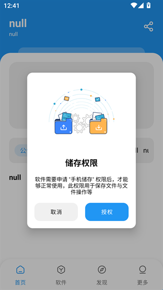 1、下载安装好软件打开进入,首次使用需要获取储存权限,点击授权。