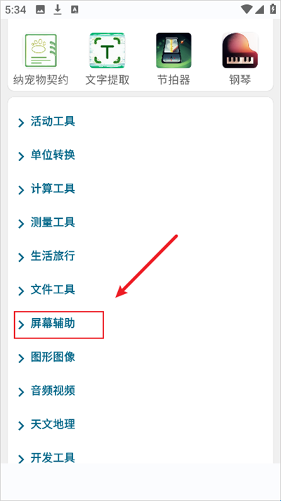1.进入实用百宝工具箱后点击下方的屏幕辅助。