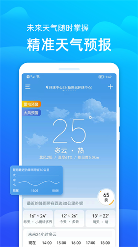 用户能够很精准的查看,天气预报超级精准,好看的天气变化。