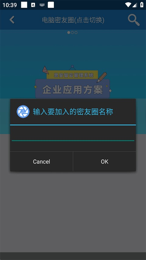 3、输入想要加入的密友圈名称,点击OK按钮,即可完成加入操作。