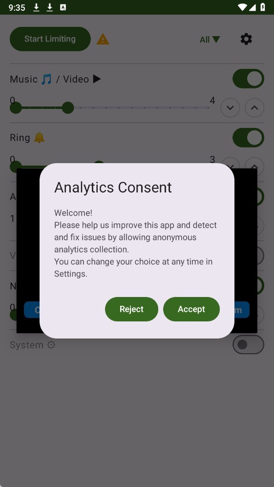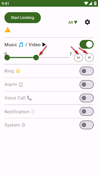 Volume Limiter是一款专注于为用户提供优质声音控制服务的应用软件,用户使用该软件可以实现对音乐声、通话声、游戏声、系统声等各种音量进行准确的控制,功能十分强大,并且软件页面简洁、操作简单、声音类型明确、所占内存体积小,大家快来下载试试吧!
