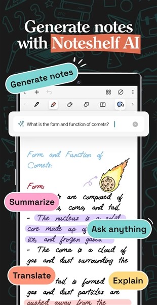 noteshelf3解锁版是一款专注于为用户提供优质笔记使用感受的应用软件,软件不仅支持写日记、记录会议重点、学习资料、重要时间等,还有多种形状、贴纸、素材、颜色、格式等待用户选择,并且软件还支持插入图片,一键导分享,功能十分强大,此外软件页面简洁、图标精致可爱、字体选择多样,可以给用户带来极致的使用体验。