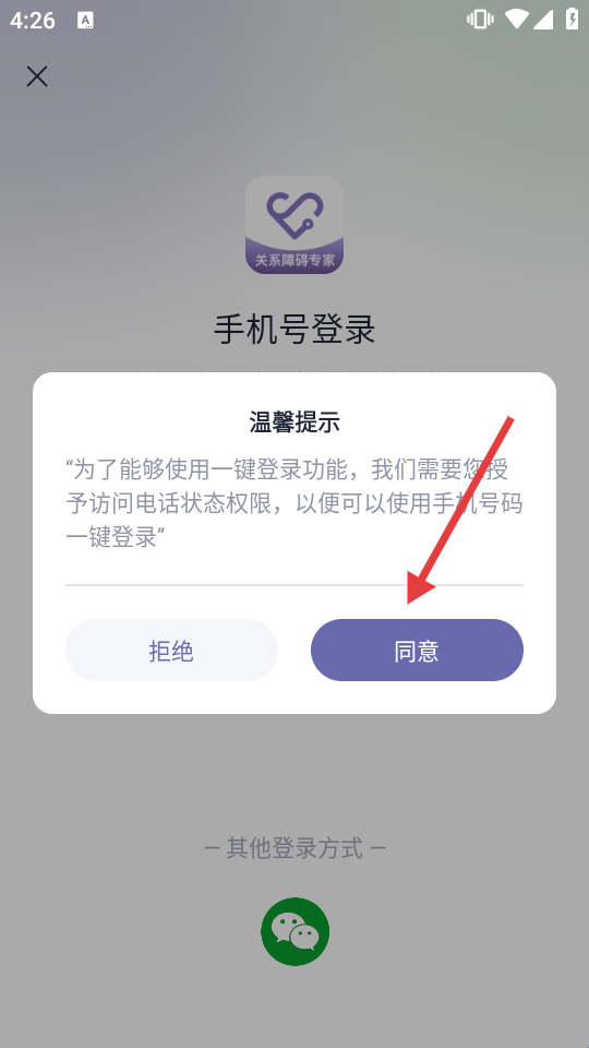 3、在登录页面,点【同意】授权访问电话状态权限。