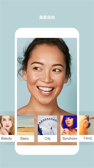 人脸识别:可自动放大眼睛、微笑、瘦脸等。
