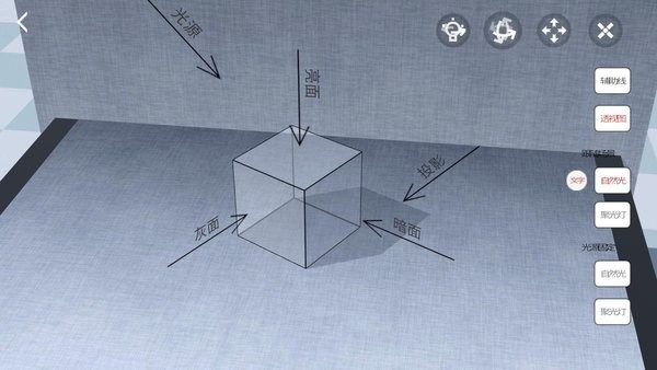 4、给静物打光时,选择可移动光源,点击上方按钮拖动,即可自由调整光源位置,观察光影变化。