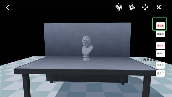2、选定静物进入练习界面后,点击透视图选项,即可显示静物的透视状态,辅助理解结构。