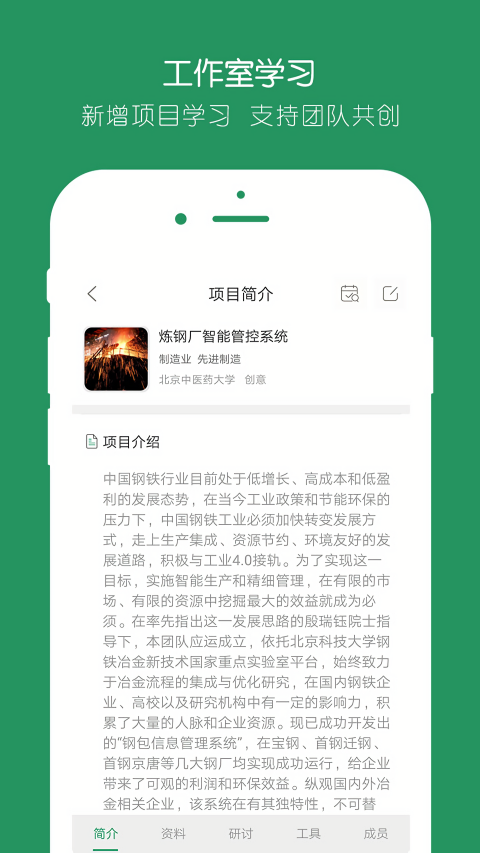 6、项目研讨共创:可于工作室内进行团队共创学习,提供在线语音聊天、文字聊天、视频聊天,支持项目精细化个性发展。