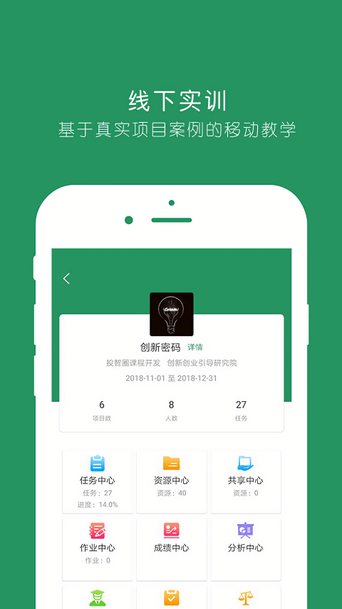 4、项目在线学习:提供项目资料加密上传,供项目团队存储共享资料、商业计划书、学习资源等,实现在线学习、交流。