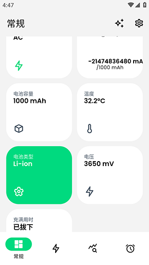 一款免费费的安卓设备电池损耗检测工具,手机电池寿命管理软件,Electron电池软件可以有效维护电池状态,统计电池充电状态情况、测算电池容量、放电速度、电池时间、温度、电压等详情,可以设置充电上限,在手机电量达到80%将提醒拔掉充电器,实现保护充电增加电池循环寿命。