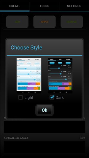 3、该工具允许您创建分区并在sdcard中对其进行管理。