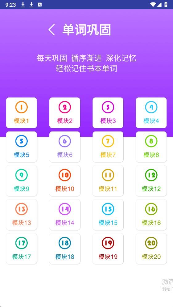 四、点击单词巩固,内有多个模块的内容可以选择学习
