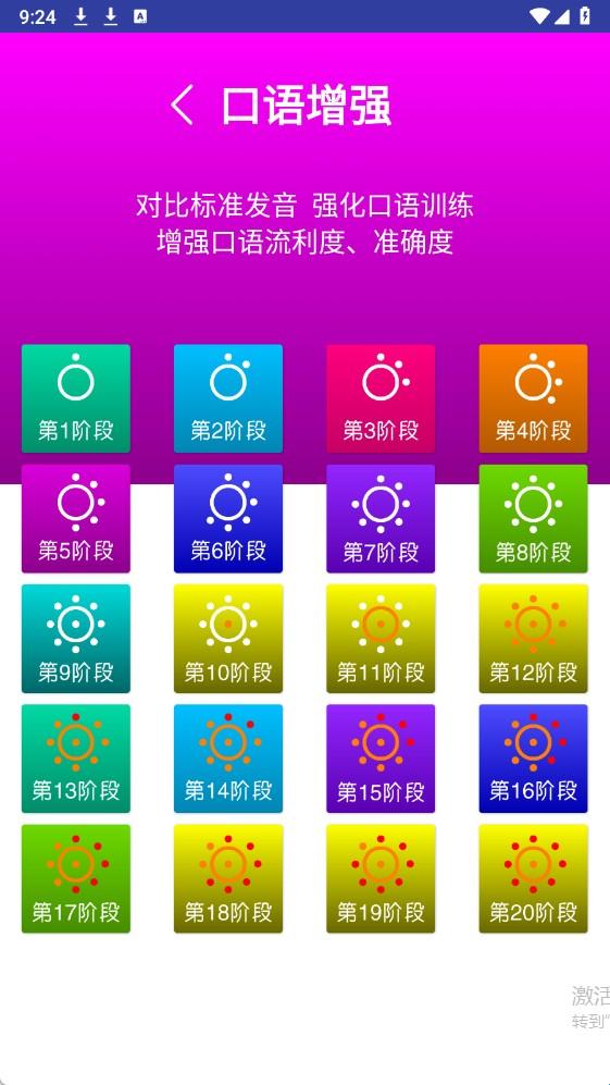 六、回到首页,选择口语增强,可以选择模块进行口语练习