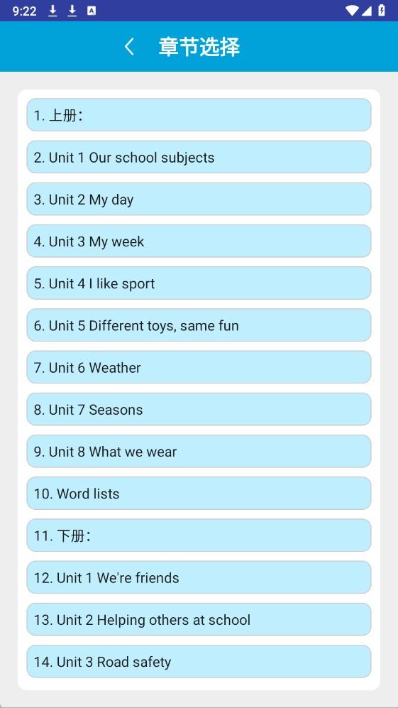 三、点击一个单元,内容鱼教材同步,可以进行朗读、填写、课本解析等内容