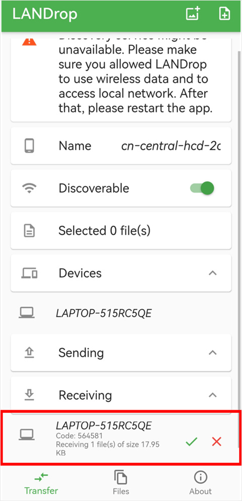 即使不在同一 Wi-Fi网络上,LANDrop也可以检测到附近的设备,并通过 WebRTC向它们传输。