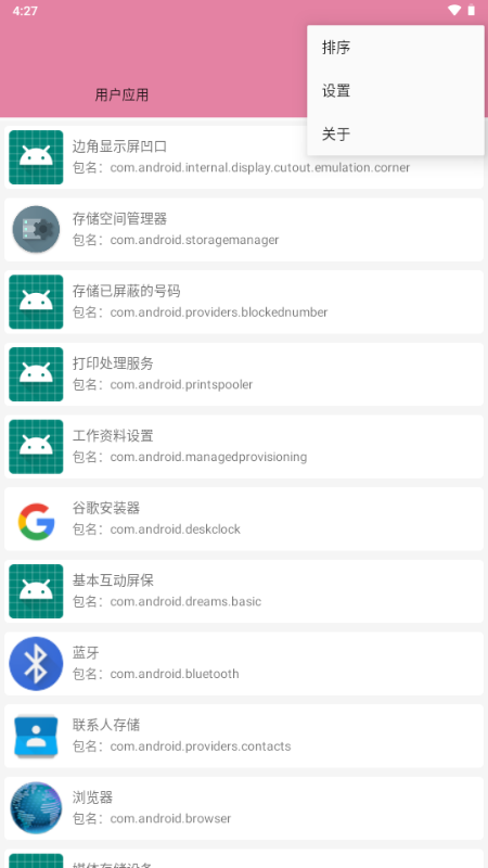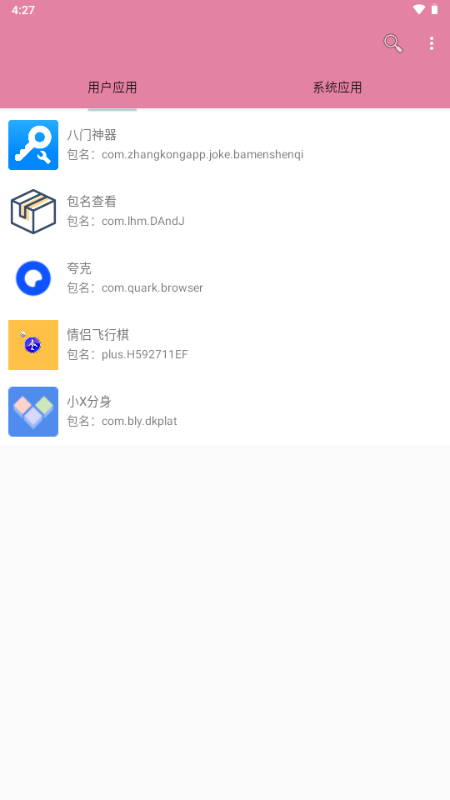 1、快速获取你手机上所有已安装和未安装应用程序的包名,方便开发者的调试与用户的管理。