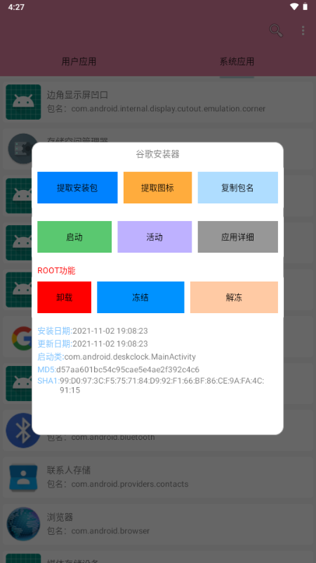 2、应用的详细信息一览无遗,包含版本号、安装日期、更新日期及启动类等,帮助用户全方位了解每个应用。