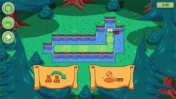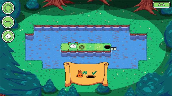 4、当关卡里的所有兔子全部进入洞穴后就会通关,每关可以移动的步数会在洞穴旁边显示。