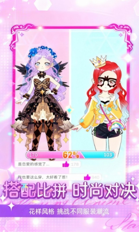 1、此外,游戏还设置了与机器的比赛环节,玩家需按特定主题为角色搭配服装,完成精彩搭配后可获得丰厚奖励。