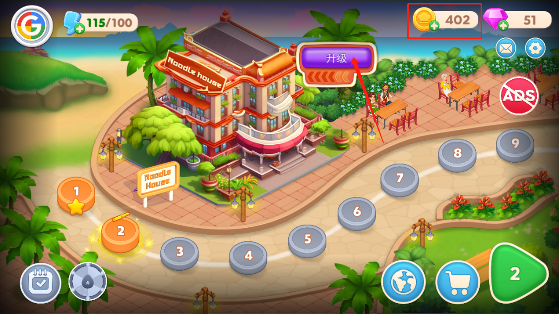 8、当收集到足够的金币,还可以对餐厅进行升级;