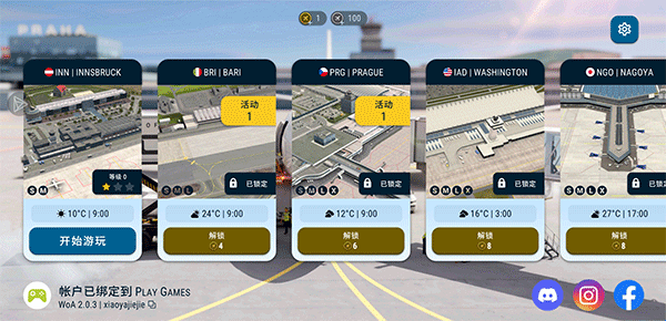 2、在可用列表中选择已经解锁的机场场景开始体验;