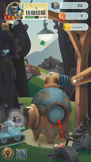 3、接下来开始处理你的第一批废弃物,点击压缩设备进行回收操作,点击频率越高,回收的垃圾数量也会相应增加;