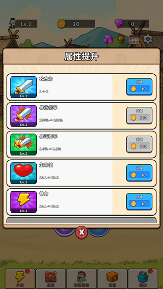 1.在这款游戏中想要快速提升等级,在获取到足够金币后攻击力是升级首选。