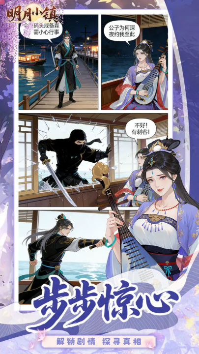 游戏采用了精美的古风画风,从建筑到人物设计都充满了浓厚的传统文化气息。悠扬的背景音乐和音效更是让人仿佛置身于古代的宁静小镇之中。