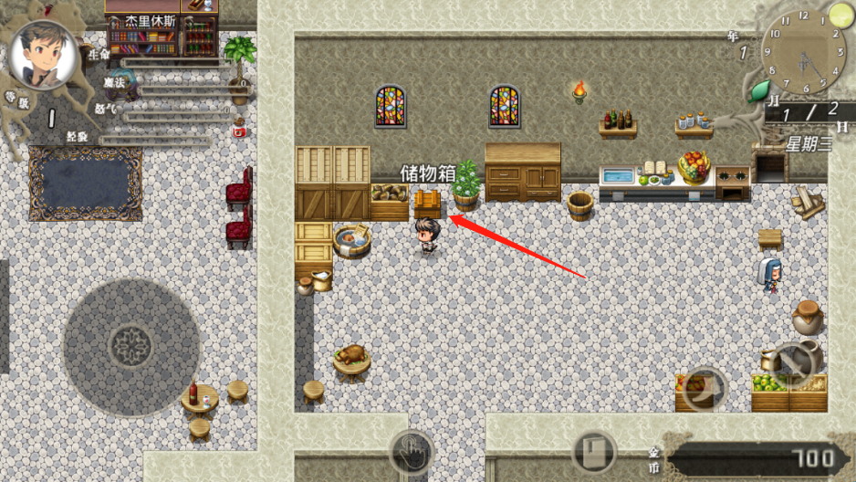 3、厨房左上角有储物箱,后期可以花钱对储物箱进行升级以提高储物箱容量,