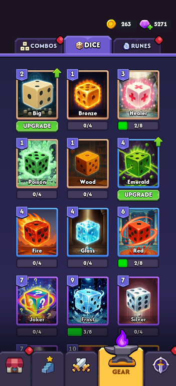 2、随着游戏的进行,我们可以不断解锁更多拥有特殊能力的骰子和护符,打造自己的战斗风格。