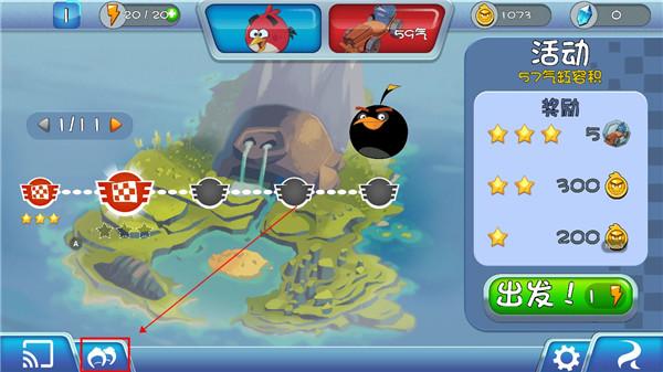 1、进入愤怒的小鸟卡丁车最新版游戏之后,玩家们需要拉动小鸟来开始起步。
