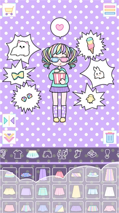 4、来使用大量衣服,物品,语音气泡和字母装饰你可爱的女孩。