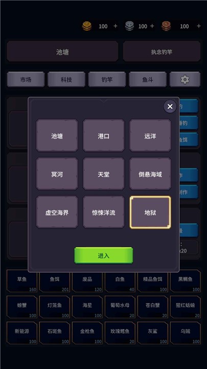 垂钓四海是以像素画风为特色的休闲益智类游戏,游戏中玩家化身为钓鱼大佬,无论是草鱼、鲈鱼、螃蟹、鲤鱼还是海胆、海参、黑鳞鱼、鲟鱼都应有尽有,可以满足不同玩家多样化的钓鱼需求,并且游戏主题温馨治愈、所占内存小、玩家随时随地都能打开进行钓鱼,进而帮助玩家释放压力、缓解焦虑、获得好心情。